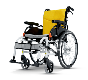 過了一段時間後,復健師建議我們換成比較輕便好攜帶的輪椅(飛揚215),因為經過訓練後,先生其實上半身已經有支撐能力了,起身也沒甚麼問題,所以換成一般的輪椅可以進一步幫助他活動自己的身體或是做更多的事。