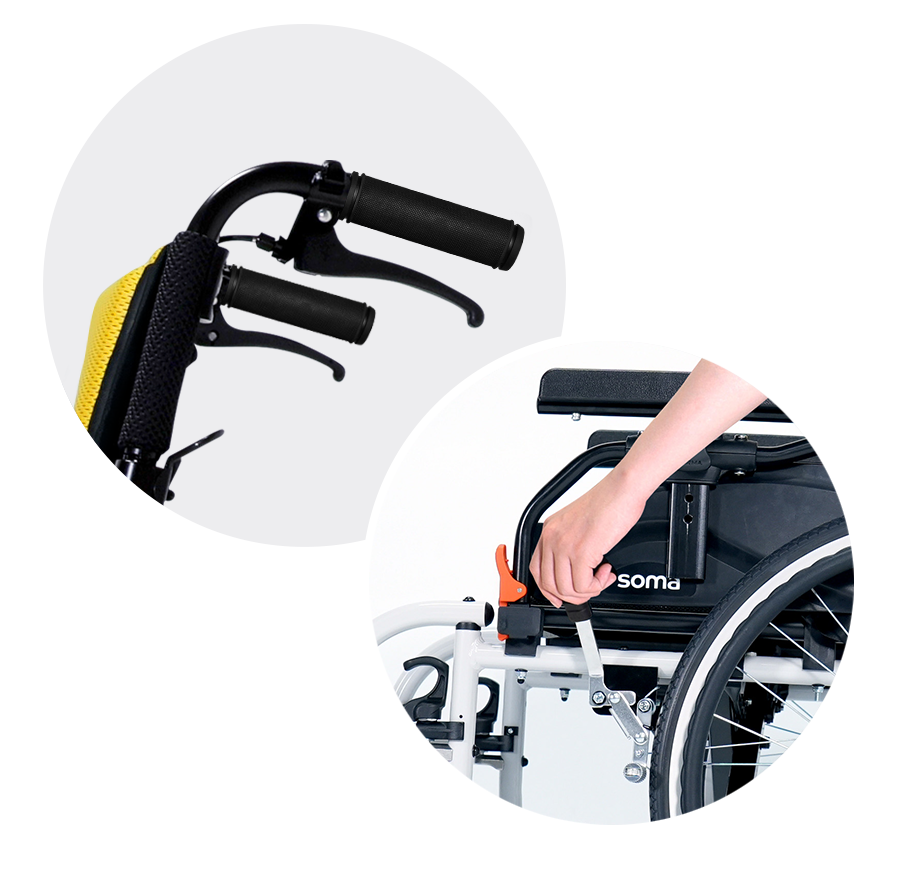 * 雖然本車款靜態穩定性的測試已符合法規 ISO 7176-1 的要求,但仍建議您平時勿跨越超過 7° 以上的斜坡。若您日常活動有跨越斜坡的需求,請選購並安裝防傾裝置 (防傾桿) 以增加車子於斜坡上的穩定性。